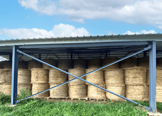 Le hangar agricole photovoltaïque est la solution la plus polyvalente pour stockage de matériel et de récoltes. Grandes portées pour vos moissonneuses et bennes, hauteur sous plafond optimisée pour la circulation des engins et un stockage en hauteur.