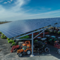 Technique Solaire supported the CLAAS – BALLANGER Concession in Aigrefeuille d’Aunis in the creation of parking canopies, with a power of 800 KWp, in order to protect and store agricultural equipment.