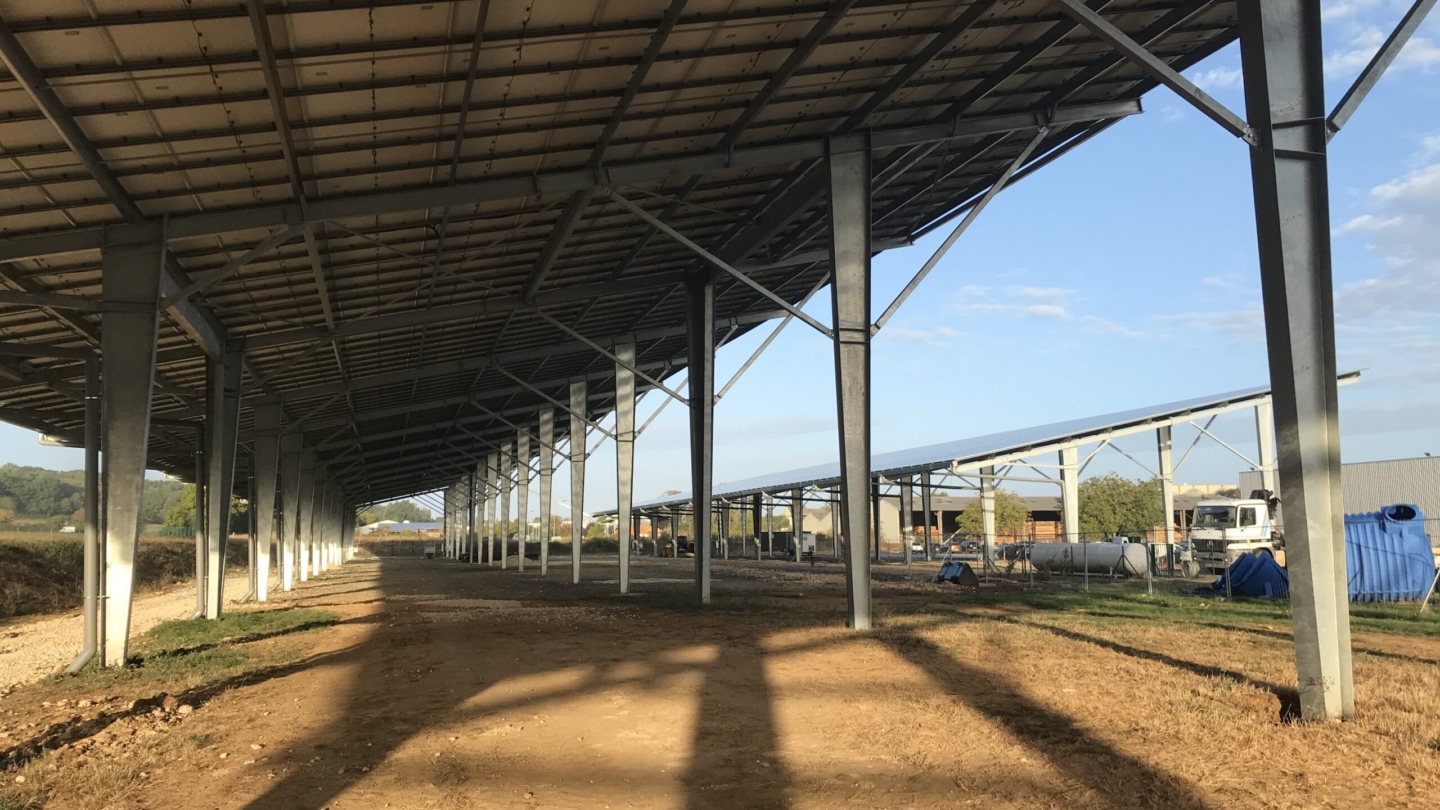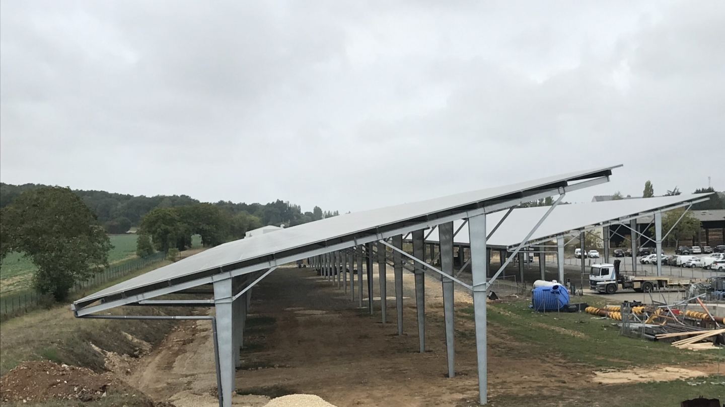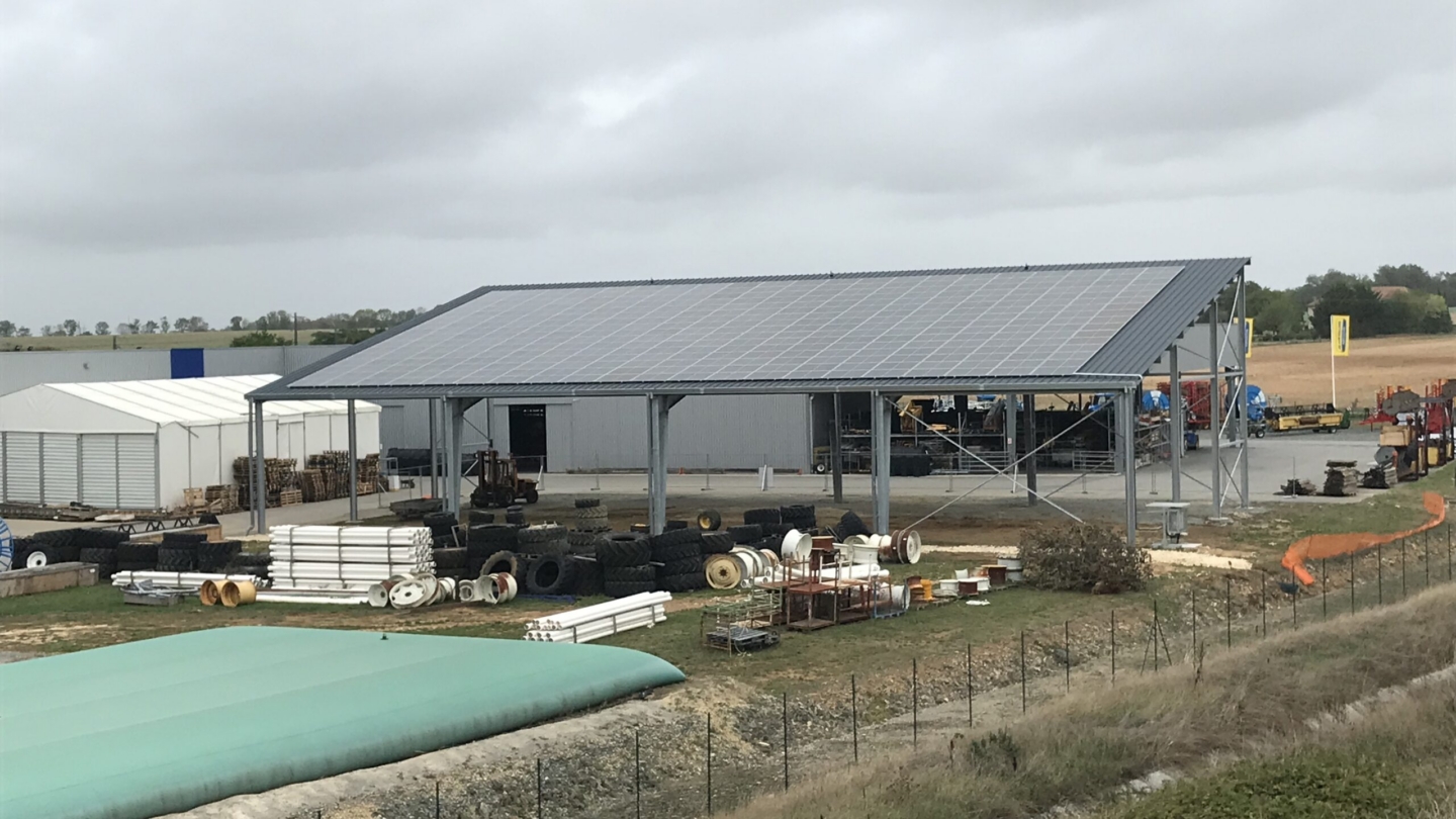 Technique Solaire supported the company SCI AGRIVAUSSAIS in Sauze-Vaussais in the creation of car park shades and a shed in an agricultural concession. They are used to house agricultural equipment. In fact, the farm belongs to a seller and repairer of agricultural equipment.