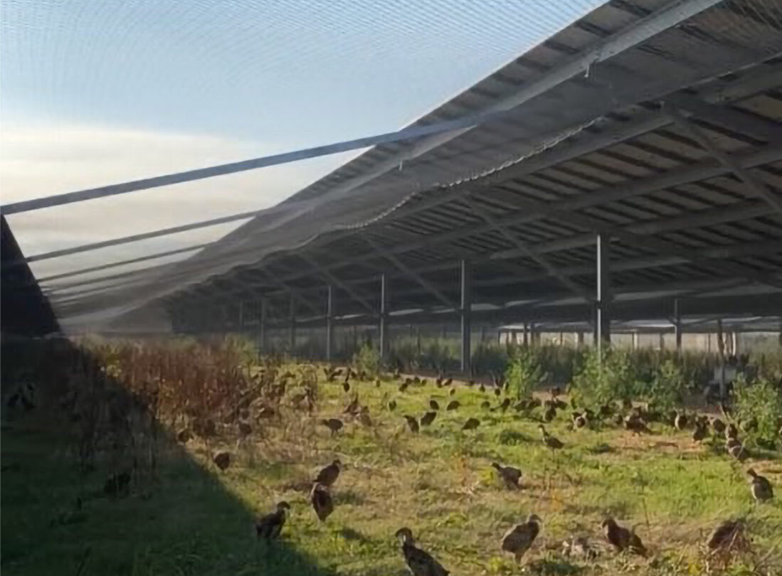 This photovoltaic aviary enables a farmer of game pheasants and partridges to increase his business and protect his animals while enhancing the value of his plots. It also provides a real improvement in working conditions and animal welfare.