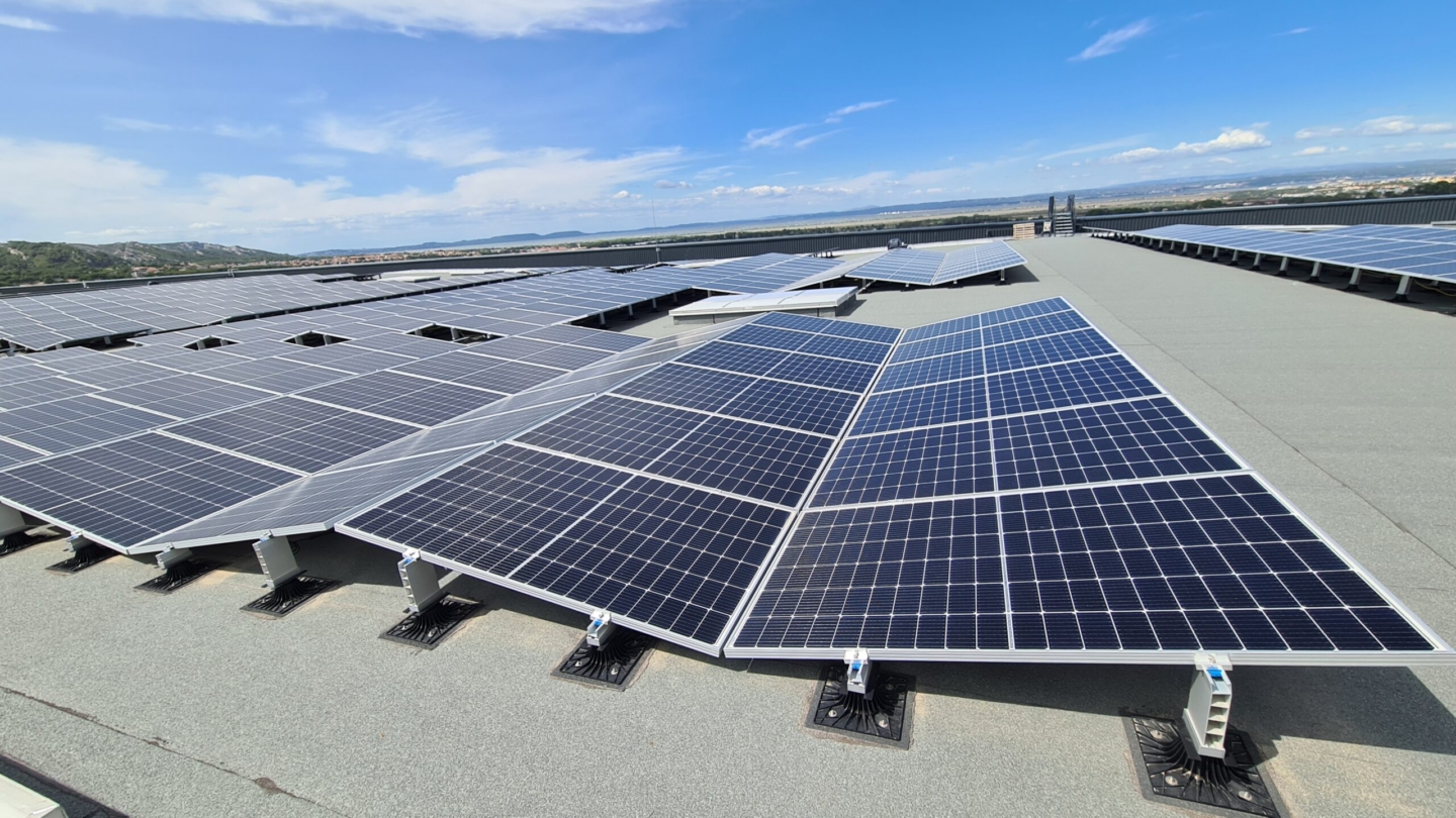 Technique Solaire a construit pour le compte du groupe Barjane, investisseur immobilier responsable, la centrale photovoltaïque sur l’une des plateformes logistiques de Décathlon. Cette centrale a une puissance de 3,3 MWc.
