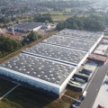 Installée et mise en fonction en toiture de la plateforme logistique Biocoop à Ollainville (91), cette centrale d’une puissance de 2 MWc produit 1,8 GWh d’électricité par an, soit l’équivalent de la consommation électrique annuelle de près de 1 000 personnes. Construite sur le site d’une ancienne briqueterie, cette plateforme logistique du groupe BARJANE de 28 000 m² s’ancre parfaitement dans une démarche RSE poussée.