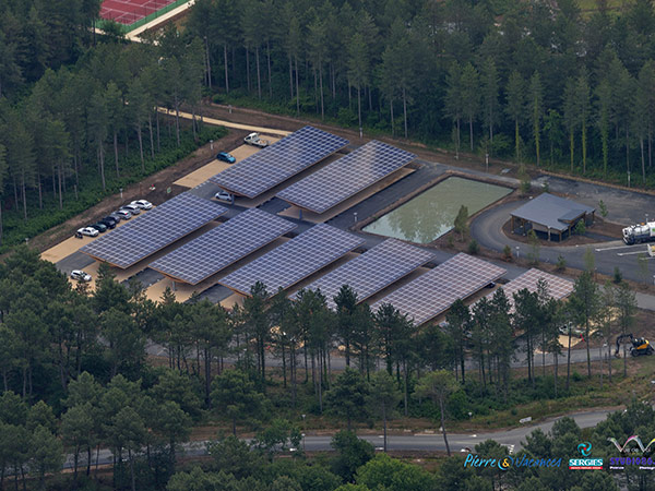 Ce projet d’ombrières de parking a été réalisé par Technique Solaire pour le compte de Sergies sur le site de Center Parcs de Pierre & Vacances. Cette centrale a une puissance de 400 KWc.
